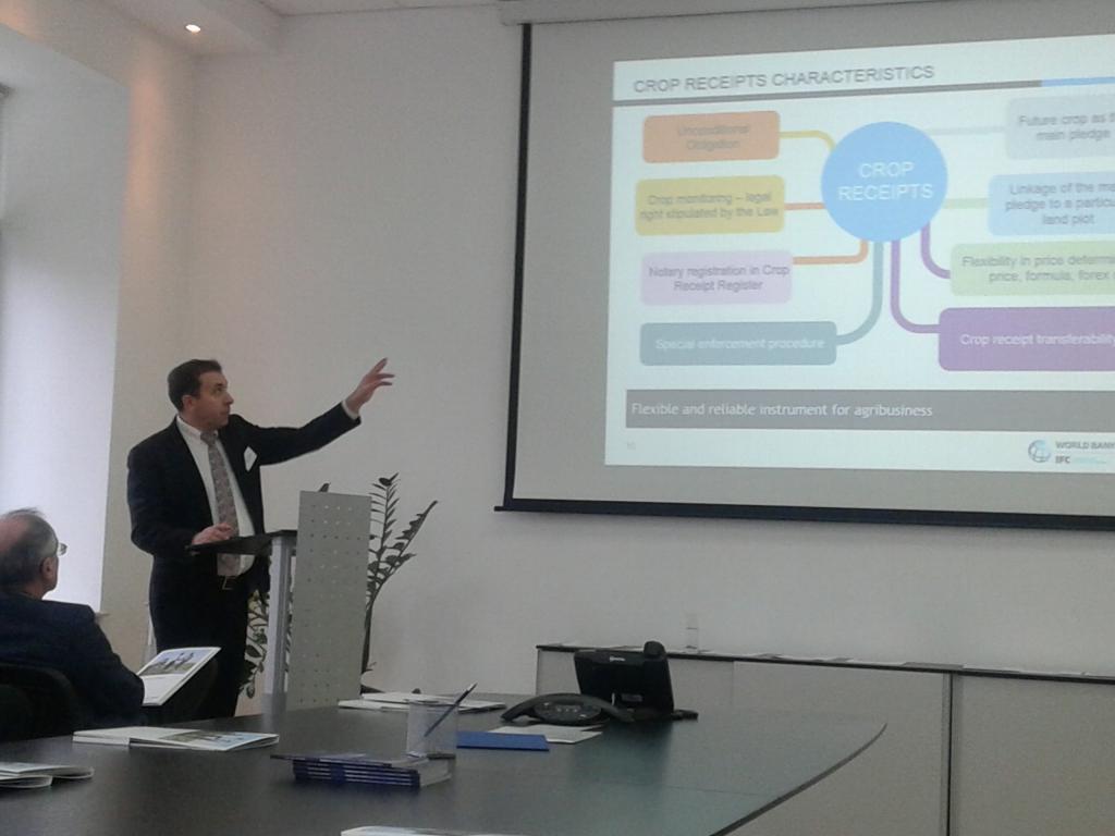Сьогодні, 6 грудня, представники компаній-членів Насіннєвої асоціації України взяли участь у заході, присвяченому одній із найважливіших тем для розвитку бізнесу у сфері сільського господарства – аграрним розпискам. Юридичний сніданок «Аграрні розписки: вивчені уроки і нові можливості» було організовано правовою фірмою Jeantet Україна, а доповідачами виступили представники Міжнародної Фінансової корпорації (International Finance Corporation, IFC) в Україні – Олександр Муляр та Кирило Мухомеджанов. Експерти розповіли про діяльність IFC в Україні загалом та детально зупинилися на впроваджуваній організацією ініціативі по використанню аграрних розписок.